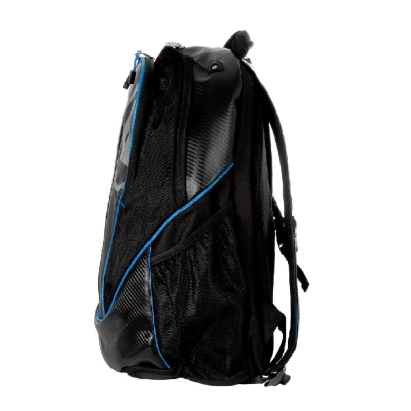 El morral Pro Kennex es el complemento ideal para jugadores de tenis que buscan combinar estilo, comodidad y resistencia en su día a día. Su diseño moderno en negro con detalles en azul aporta un look deportivo y sofisticado, perfecto tanto para entrenamientos como para competencias.